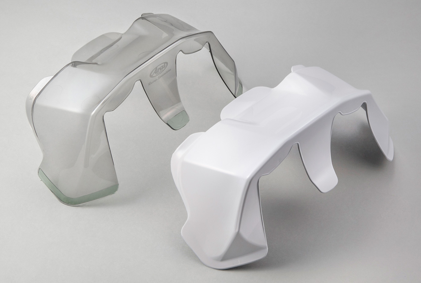 Arai RX-7X用の防曇シート(ピンロックシート)は3,300円(税込)。レーシングスポイラーは5,775円(ライトスモークは4,620円)。2つ合わせて9,075円。