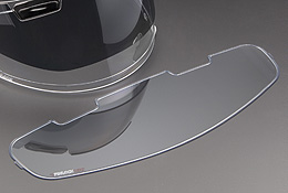 SHOEI X-Fifteenは防曇シート(ピンロックシート)とスポイラーが標準装備。